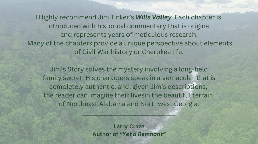 This is a story about a place, a time, and a people. It is about an old man who was very aware of his mortality and a young man who felt immortal. Within ten years, both men would be dead, and today, they lie somewhere in unmarked graves in Will’s Valley between Lookout Mountain, Georgia and Sand Mountain, Alabama.